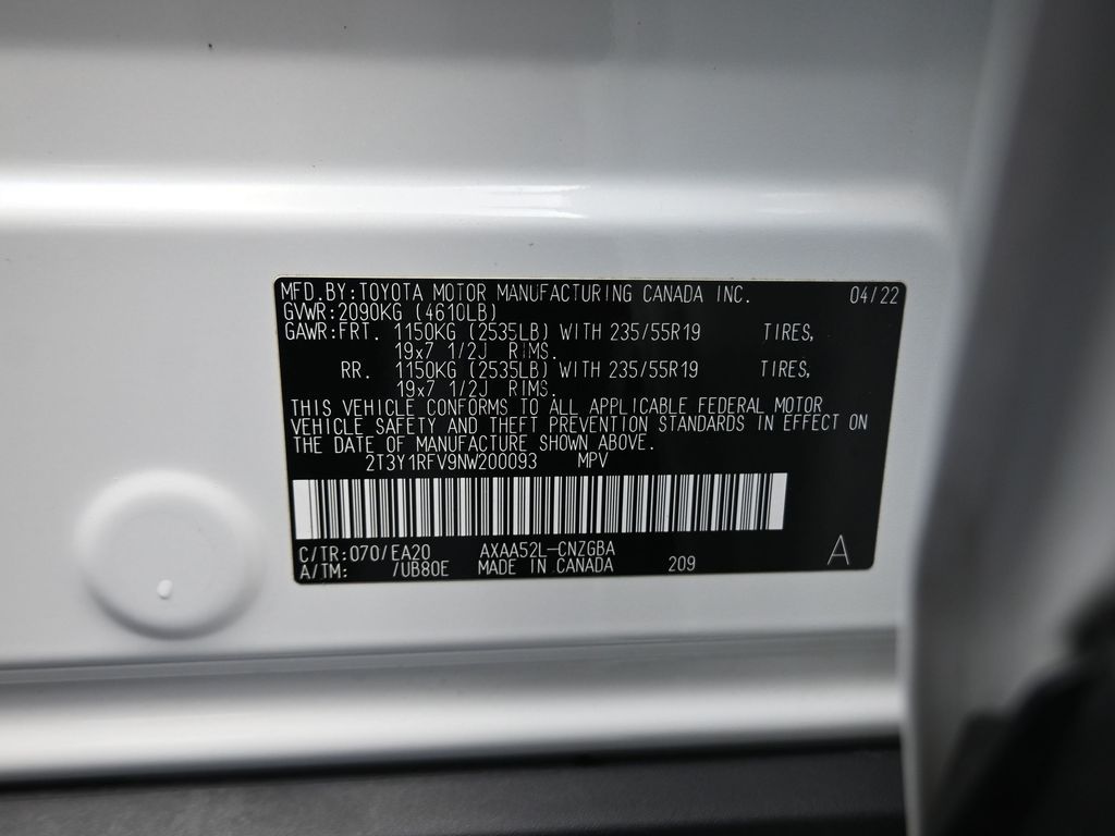 - VIN : 2T3Y1RFV9NW200093